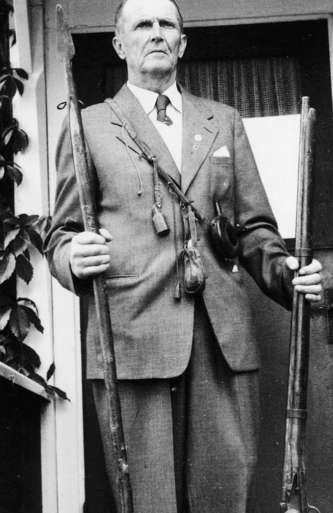 KUVA Pitkäranta Oy:n agrologi Olof Z. Berg keihään ja haulikon kanssa. Museovirasto