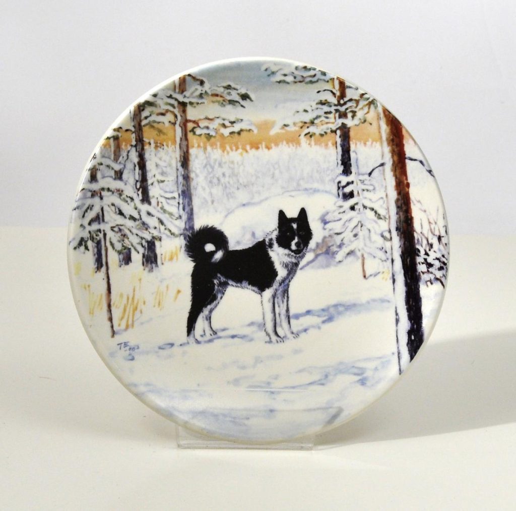 KUVA Rakastettu rotu on ikuistettu myös Arabian muistolautaseen vuonna 1990 ja postimerkkiin. Metsästysmuseo